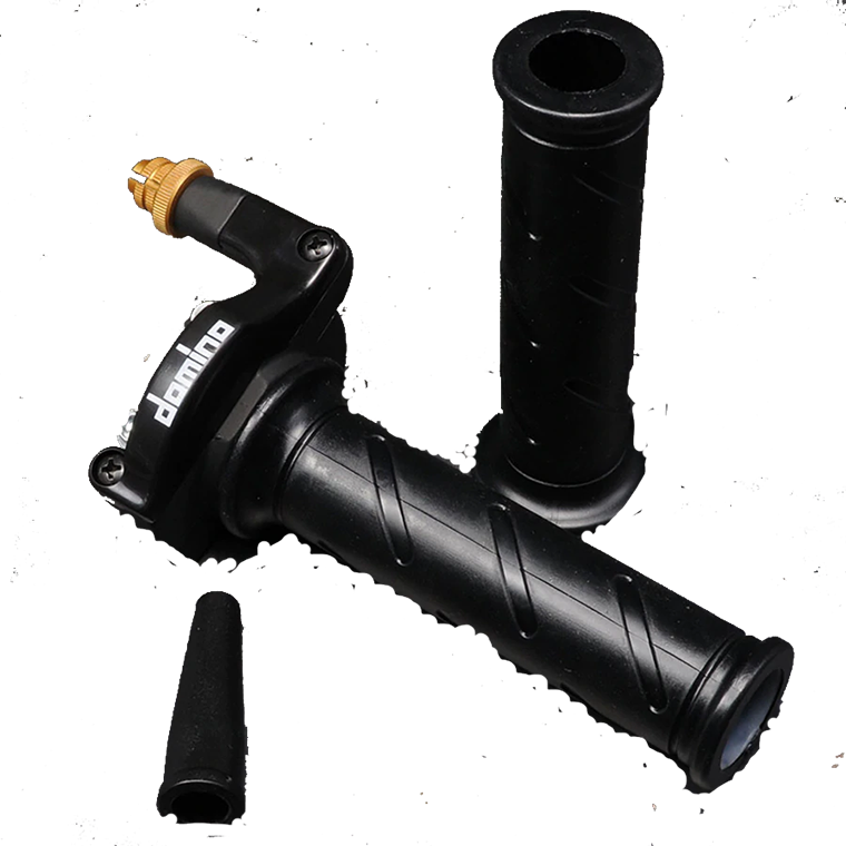 The Domino Mostro Single Pull racing throttle is a single pull throttle with original Ducati grips. The housing is available in flat black aluminum accepts a single cable. This throttle works excellently on an XV920R that you plan to vintage race, aggressively. Or any Virago built for some street thrills.